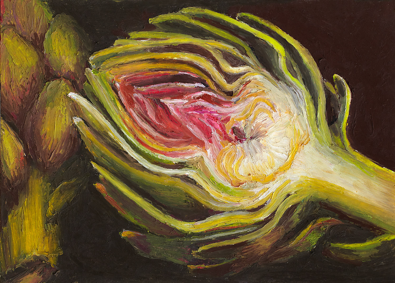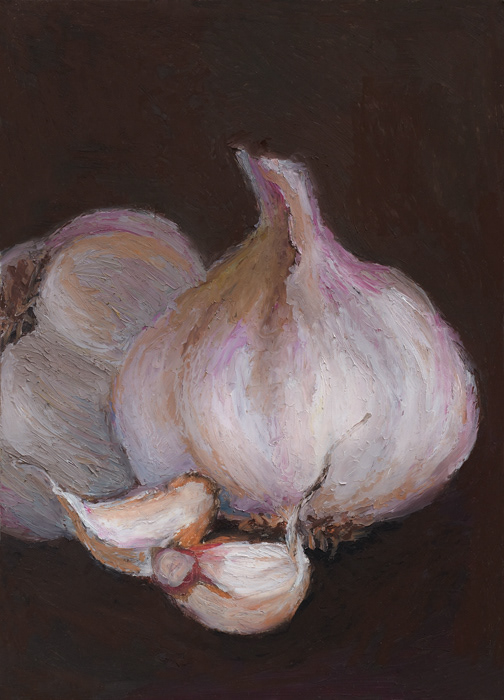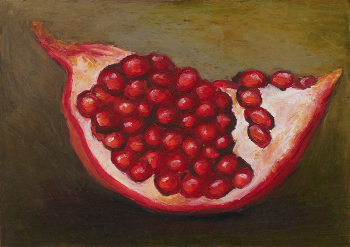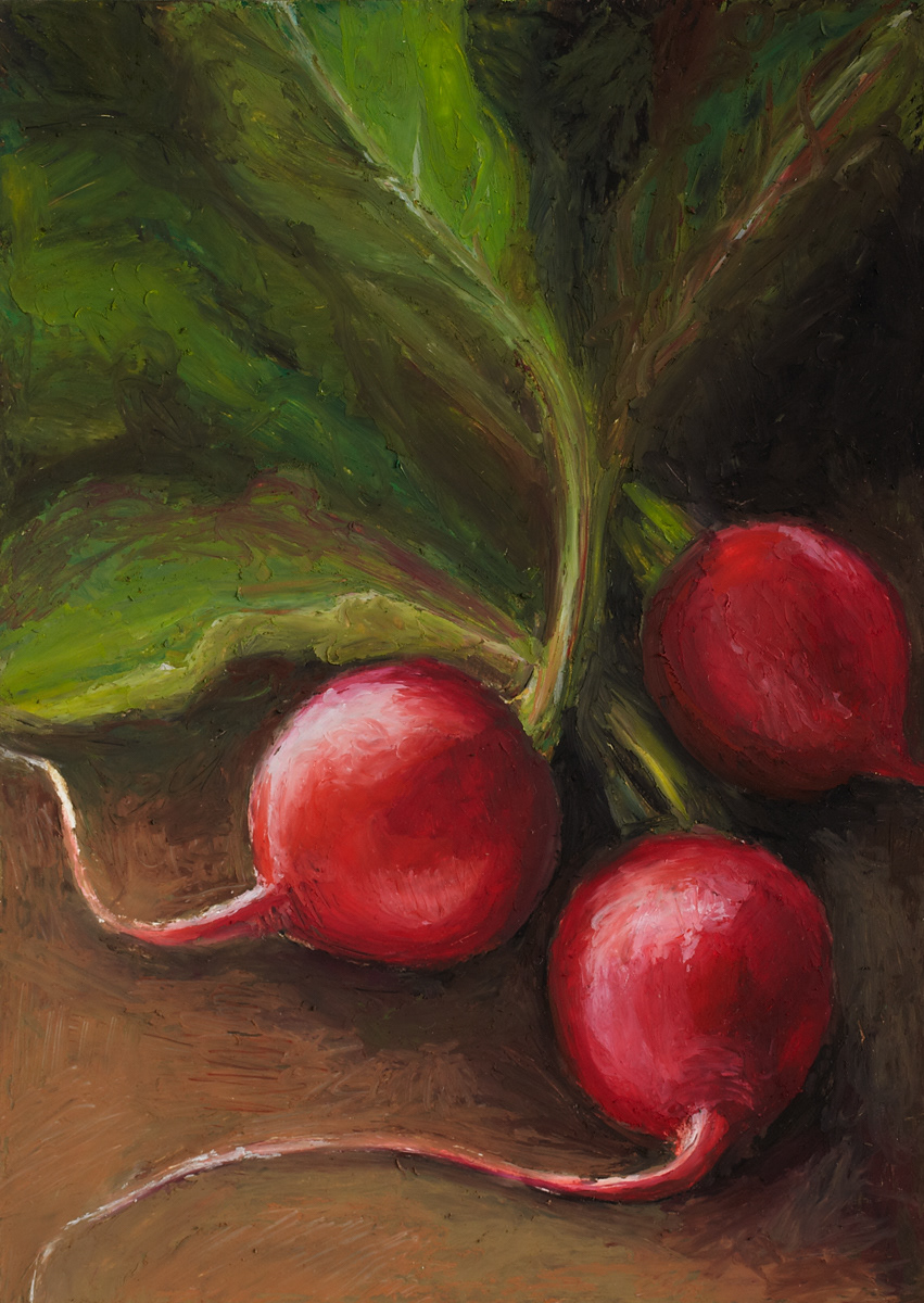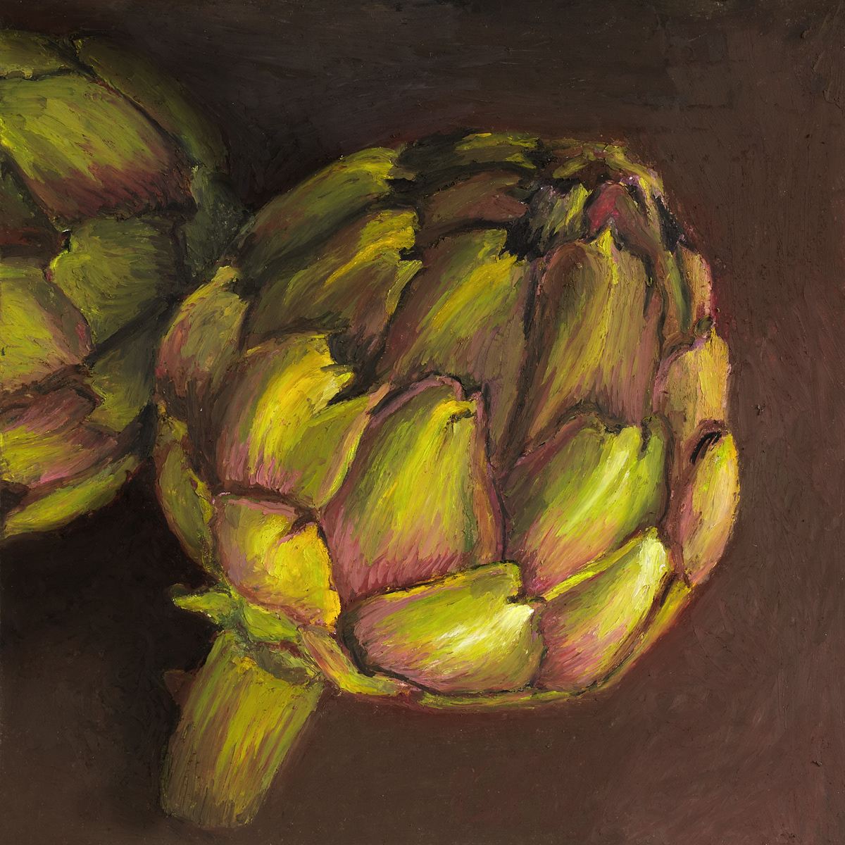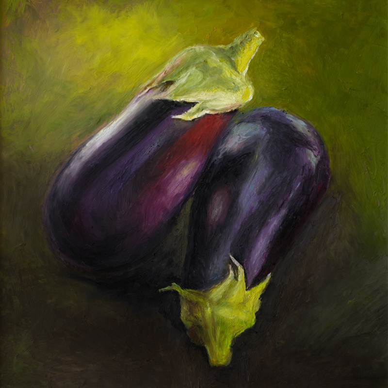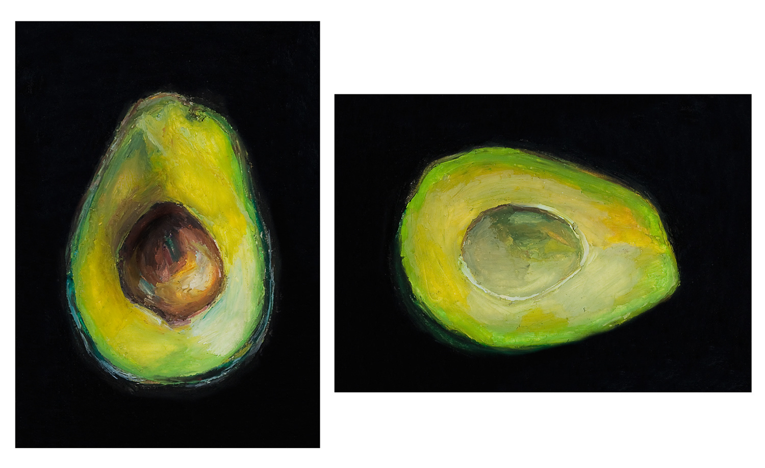 a series of fruit and veggie oil pastel paintings